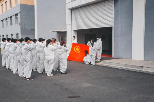 “自觉成为团员先锋,不计报酬,不讲条件,履职尽责,保证完成各项工作任务。”仪式中,王忠烁作为新团员代表作了发言。他说,作为奋战在抗击一线的共青团员,不仅要把团徽佩戴在身上,更要把团徽和团旗永放心头,牢记入团誓言,坚定理想信念,时刻以团员标准严格要求自己,以实际行动不负团员身份、不负使命担当。